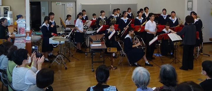 なお、このコンサートは、かほく市社会福祉協議会の助成を受けています。今年はグループホーム、ディサービス等の市内3施設の方々に来場いただきました。会場では生徒の演奏に応援をいただき、ありがとうございました。これらの施設と本校生徒の活動は、本校学校コーディネータの 沖野さん がつないでいます。吹奏楽部にとっては4月の桜まつりに続き、地域の方々に日頃の活動を披露する素敵な機会となりました。