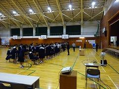 4限に体育館で2年生の 合唱コンクール リハーサル が行われました。いよいよ、本番まで1週間です。今日は本番同様に文化委員会の皆さんが進行し、入退場、ステージの立ち位置を確認した後、当日と同じ演奏順で合唱を披露しました。リハーサル後には、音楽科の山本先生より各クラスへのアドバイスが送られました。各クラスとも、大いに刺激を受けた時間となったようです。なお、1年生、3年生の合唱リハーサルは、22日(火)にありました。全校で、全クラスで、最後の1週間の 追い上げ や 仕上げ が楽しみです。