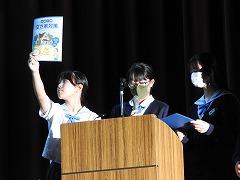 文化祭が行われました。今年度の生徒会目標「STAND BY ME」のスローガンのもと、創作部アクトから文化祭が幕を開けました。吹奏楽部のステージ発表、学習成果発表会、合唱コンクール、探究学習の発表とそれぞれに「一人一人がみんなに寄り添って、みんなが主人公になれるように」自分の最大限を発揮しました。特に探究学習の発表では「伝えたい、分かってほしい」という思いが伝わってくる発表でした。さらに、各学年の展示、創作部の展示、「未来のかほく市」をイメージした美術科作品が、文化祭に花を添えてくれました。