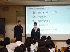 株式会社PFUより、講師に 藤田 国和 様 をお迎えして「プレゼンテーションの仕方」と題した講演会が行われました。これまで、スライドを作成して発表する機会は多くありましたが、それがプレゼンテーションではなく、プレゼンテーションとは「相手がこちらの望む行動をとってくれるための行動」と教えていただき、プレゼンテーションの前に考える事前準備が大切なこと、伝えるときのポイントなどを分かりやすく教えてくださいました。現在「地域について知る」探究活動を進めている1年生です。今後の活動に役立ちますね。