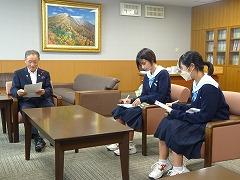 油野 市長 様には、市の財政、人口等の現状や市長の考えについて、中学生に分かりやすく聞かせていただきました。お忙しい中、時間を割いていただき、ありがとうございました。