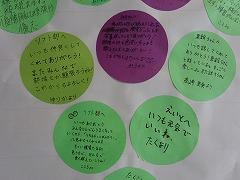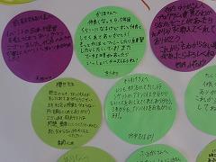 本校の10月の実践目標は「人権を大切にしよう」です。生徒会執行部は、全校集会で「いじめ」の原因について考える時間を持ち「ありがとうメッセージ」の取組を行いました。この取組は、全校生徒が友達に感謝したいこと、素敵なところをカードに記すものです。全校から集められたカードが、クラスごとの「ぶどう」になって、生徒玄関前に掲示されました。カードの中には「部活動のとき、アドバイスをくれてありがとう」「話を聞いてくれてありがとう」「仲良くしてくれてありがとう」など、いろいろな感謝の気持ちがいっぱいでした。ぜひ、この温かな空気が学校中に広がるといいですね。