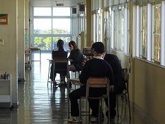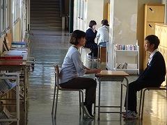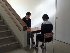 毎月、学年の職員と面談する機会をもっています。今月は文化祭前で時間の確保が難しく、今週を朝読書の時間を活用して「面談週間」としています。今日の話題は、後期に入ったことで、生徒会や学級の組織も替わったり、中間テストを終えたり、文化祭に向けたりと、いったところでしょうか。わずかな時間ですが、この職員と話をする場をを通して、近くに話を聞いてくれる大人がいることを感じてほしいと思います。