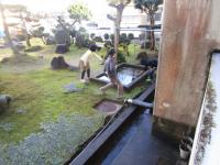 休み時間、外から子供たちの声が聞こえると思ったら、3年生が池の鯉をのぞきに来ていました(笑)。