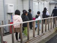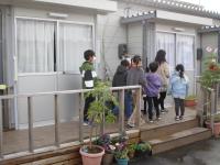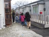 チラシを配りに、、子供たちがグラウンド内の仮設住宅に行ってきました♪