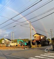 今朝、いつもの交差点で街頭指導をしているときに、とってもきれいな虹が出ていたので撮りました♪