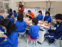 いよいよ給食です♬ 子供たちは、かにの身のむき方や取り出し方に苦戦しています(笑)。