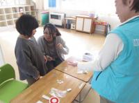 蛸島小の3人も1人ずつ分かれて、他の学校の子供たちと一緒のグループに入り活動します。