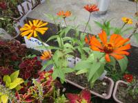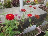 校舎と仮設住宅の間に咲いている「百日草」です♫