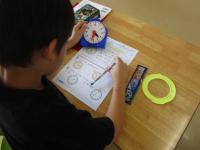 子供たちは、算数セットに入っている時計セットを、ギーギーと回し始めます(笑)。