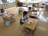 子供たちは、箸の持ち方に気を付けながら、おいしそうに給食を食べていました♫