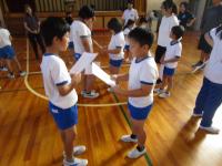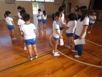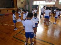 今朝は、なかよし集会でした。全校の子供たちが学年に関係なく