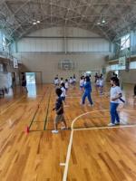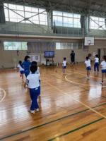 元気が出そうなアップテンポの曲に合わせて、子供たちも先生方も