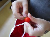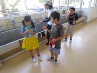 2年生が生活科の時間に、プランターで育てているミニトマトの実をもいできて、
