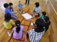 話し合いをリードする高学年の様子を、中学年、低学年の子供たちはしっかりと見ています。