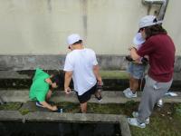 2年生が、生活科の時間に、晴れ間をぬって外に出ています。
