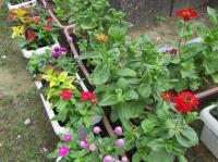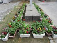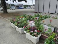 子供たちが地域の方と一緒に花を植えたプランターと、