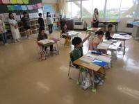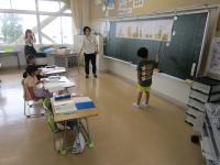 今日は1年生の教室に、上級生たちが参観に来ていました。国語の学習で読み取った内容を