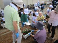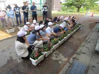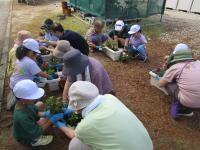 今日の午後から、(株)カインズさんのご支援を得て、「花苗の寄せ植えプロジェクト」を行いました。