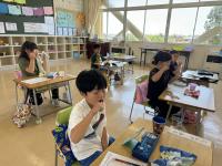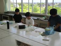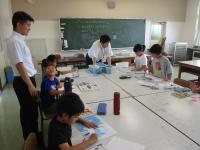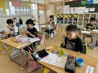 3年生と4年生が複式授業で図画工作の学習をしています。