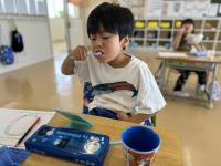 1年生が、養護教諭から歯磨き指導をしていただきました♪