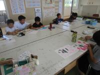 4年生は、あれこれ構図や大きさなどを何度も修正しながら、まだ下絵を描いている子が多いのに、