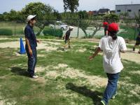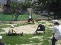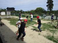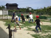 写真の「鬼ごっこ」は、「鉄棒」の前に行う準備体操です♫ 水分補給を忘れずにね(笑)。