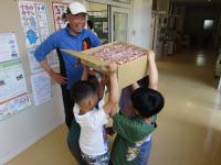 受け取り役の1年生は大喜びです(笑)。遠いところから、本当にありがとうございます。