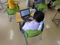 パソコン画面を見ながら、一人で集中して覚えている子や