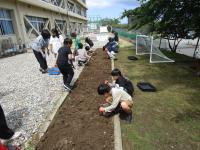 2024年6月4日 16時06分昨日の写真です。そうじの時間に全校児童でチューリップの球根掘りをしました。