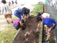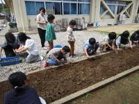 子供たちは、移植ごてを上手に使って、丁寧に集めていました。