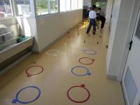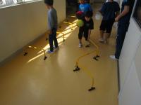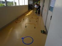 今日の3,4年生の体育の授業は「小型ハードル走」です♪ しかも、ろう下で(笑)
