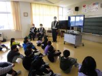 低学年と高学年に分かれて、交通安全のDVDを見たり、安全についてお話を聞いたりしました。