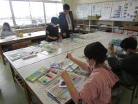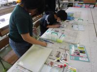 5年生が図工の学習をしています。今日は絵具を使って模様づくりをしています♪