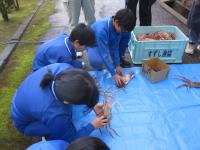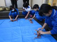 5,6年生が、カニの甲羅みがきをしました。