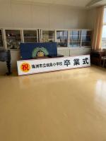 宮野さんが、卒業式に向けて、看板を運んだり、紅白幕をかけるフックを取り付けたり