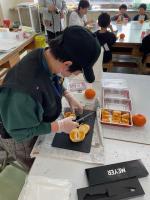 昼食時間には、いただいた「いよかん」を食べやすいように、包丁でカットしてくださいました♪