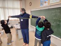 予想した後、答え合わせのために、私が手を広げた長さをはかってくれています♫
