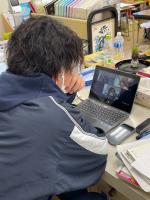 自分の考えを隣にいる友達にも、そして、オンラインで授業を受けている友達にも伝えています。