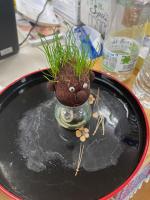 今日、校舎の周りを見回っていると、銅像の鳩が何かくわえているではありませんか(笑)。
