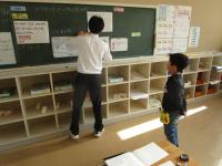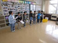 1,2年教室へ行ってみると、1列に並んで、何やら大きな声を出しています(笑)。