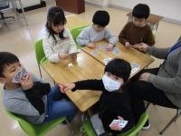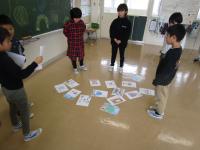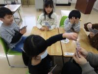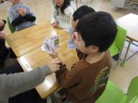 1年生がお楽しみ会で「ばばぬき」をしていました♪ カードを配るのは徳成先生です。