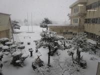 外はまだ雪が降り続いています。1年生はちゃんと歩いて下校できるかなあ。