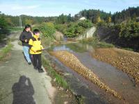 昨日の写真です。5年生が理科の時間に、正院町を流れる「金川」の
