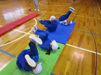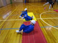 2年生が体育の時間に「マット運動遊び」の学習をしています。