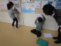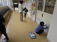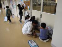1年生が図工の時間に中島先生と一緒に学校の中をウロチョロしています(笑)。