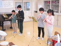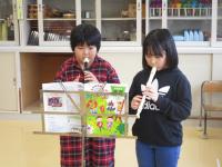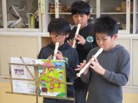 複式の授業なので、3年生は「山のポルカ」、4年生は「オラリー」のリコーダー演奏をしています。
