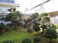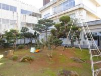 今日の昼休みは、学校の周りをグルリと一周♪中庭では、校務員の宮野さんが「雪つり」の作業の真っ最中です。