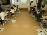 5,6年生が学習室で書写(毛筆)の授業をしていました。