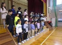 朝の時間に、全校児童で学習発表会で披露する「合唱」の練習をしました♫